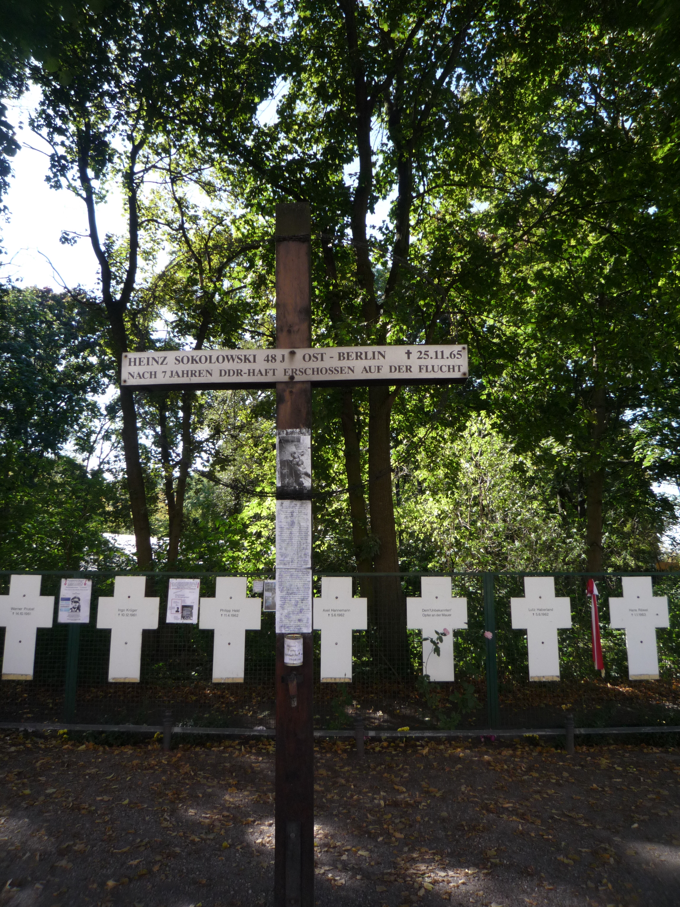 Croix à la mémoire des victimes de la Stasi. Berlin 2010. Archives Gorboff (c)7. En allant visiter la tristement célèbre prison de la Stasi, personne, dans cette banlieue de l’ex- Berlin Est parfaitement réhabilitée, ne sut – ne voulut – me dire où elle se trouvait, alors même que la veille, à l’occasion du trentième anniversaire de la chute du Mur, on avait diffusé La vie des Autres à la télévision et que j’avais pensé : « Bravo, les Allemands !»…Triomphante, la splendide coupole du Reichstag incarnait l’orgueil d’une nation (elle eût été parfaite à Moscou). Dans les musées, le personnel affectait de ne pas comprendre l’anglais et la majorité des panneaux explicatifs n’était rédigée qu’en allemand… Mais à deux pas du Reichstag, près de croix maladroitement accrochées à la grille d’un parc, un vieillard, ancien prisonnier de la Stasi, distribuait des brochures à la mémoire de ses camarades torturés… « Où est le Mémorial des victimes de la Stasi ? », demandais-je à l’Office de tourisme. Il n’y en avait pas.