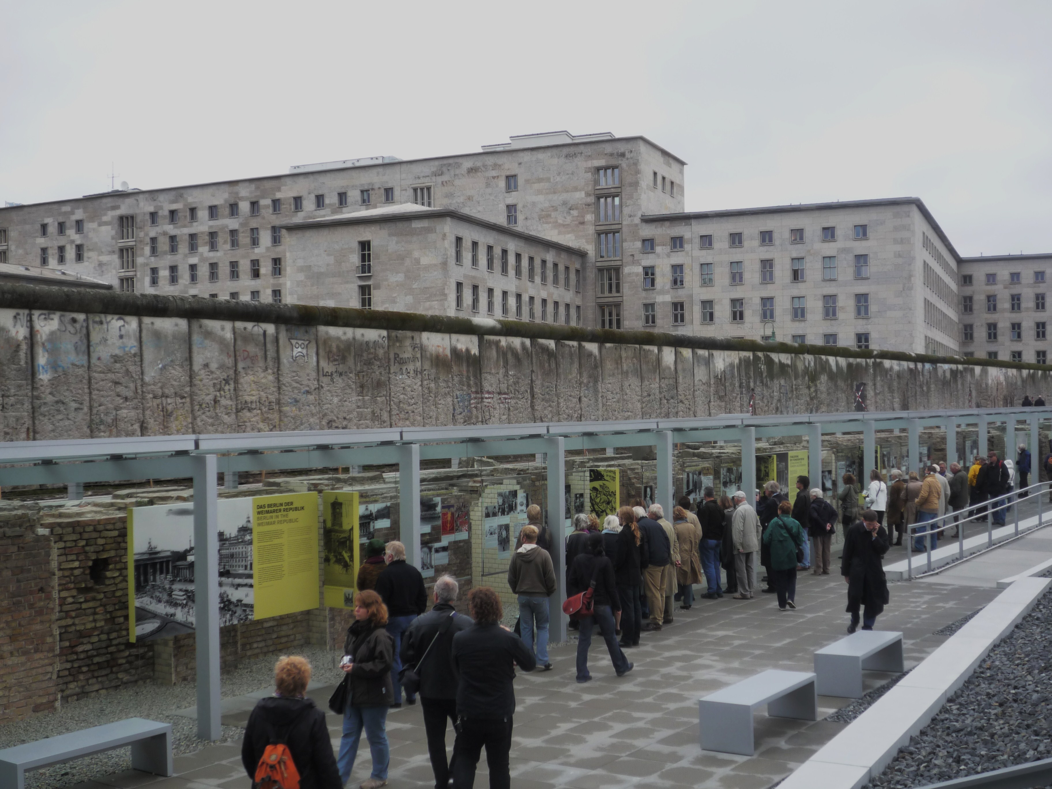 Topographie de la Terreur. Berlin.2010. Gorboff(c) 5. « Topographie de la Terreur », tel était le nom, particulièrement éloquent, de l’exposition permanente consacrée au nazisme. Ils étaient tous là, avec biographie et photos : Hitler, Himmler, Göring…Des adolescents écoutaient attentivement les explications d’une conférencière, applaudissaient son discours ; je fus émue. Fondé par un particulier et dédié au Mur, le musée du Check Point Charlie, bien fait et très fréquenté, dressait la liste non exhaustive des innombrables victimes du NKVD et de la Stasi, osait qualifier Staline de « dictateur » (mot absent des manuels scolaires français). Le musée de la RDA, trop ludique, me parut être une schématisation réductrice de la vie des Allemands de l’Est, mais enfin, il existait… Les Juifs n’étaient pas oubliés : un superbe musée et le Mémorial de l’Holocauste, sur les stèles duquel de joyeux jeunes gens – Allemands et touristes – sautaient allègrement ou pique-niquaient sans avoir, semble-t-il, le sentiment de manquer de respect aux morts.